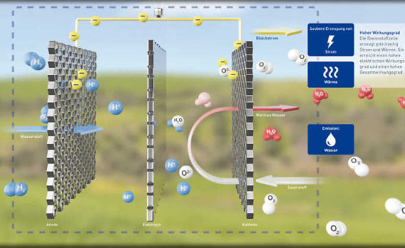 In einer Brennstoffzelle findet eine kontrollierte Knallgasreaktion zwischen Wasser und Sauerstoff statt – nur ohne